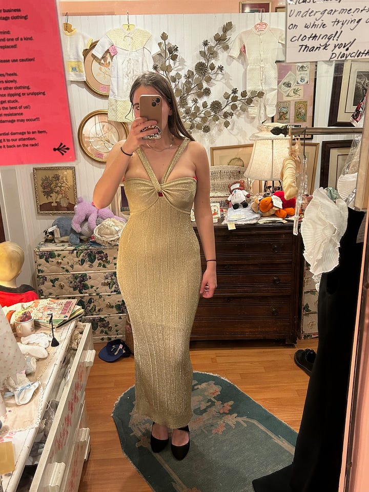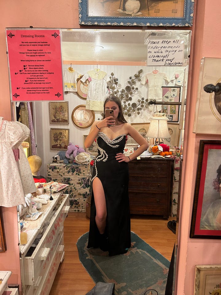You clear the few weekend plans you have. To find a gown, you enlist your cousin’s girlfriend. She works in costumes. Her last gig was head of the “aging and dying” department on Killers of the Flower Moon.